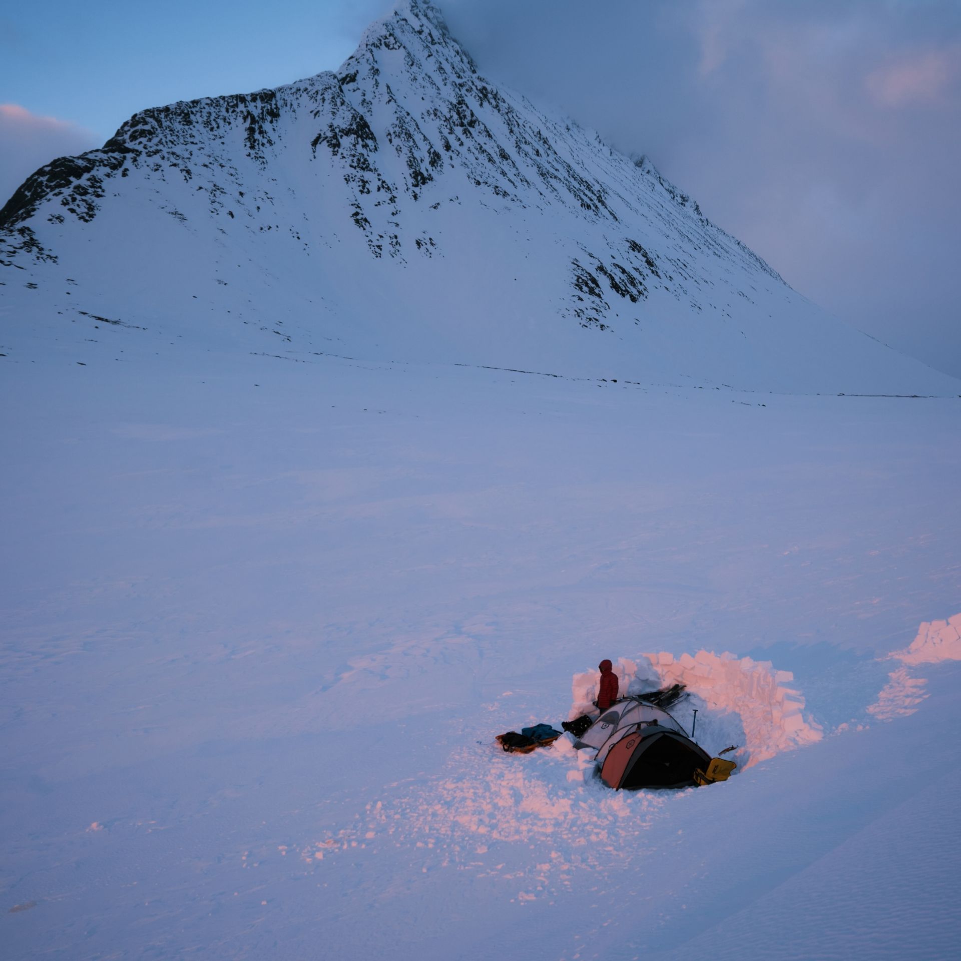 "With three tents, two days of food, and warm clothes packed, we set off on a six-hour ski tour towards the foot of the mountain, where we’d camp. The winds meant we didn’t reach our preferred spot, but we found a good place to build shelter for our tents, then got an early night.