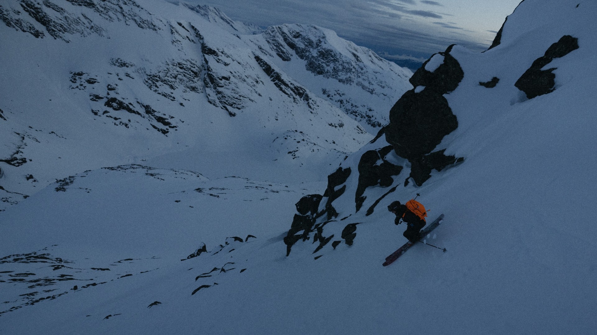 Always preparing for the unexpected, Kristofer and Craig changed plans. They studied radar maps and forecasts and found a new area nearby in Norway protected from the heaviest weather. Despite the setback, they pulled off an epic Arctic adventure in the midnight light, starting their ascent in the afternoon and returning to the lodge in the early morning.